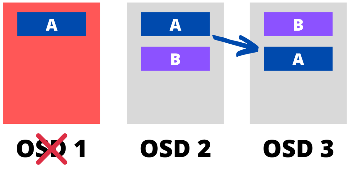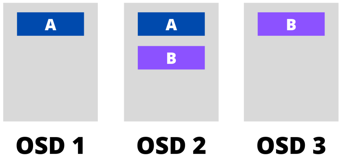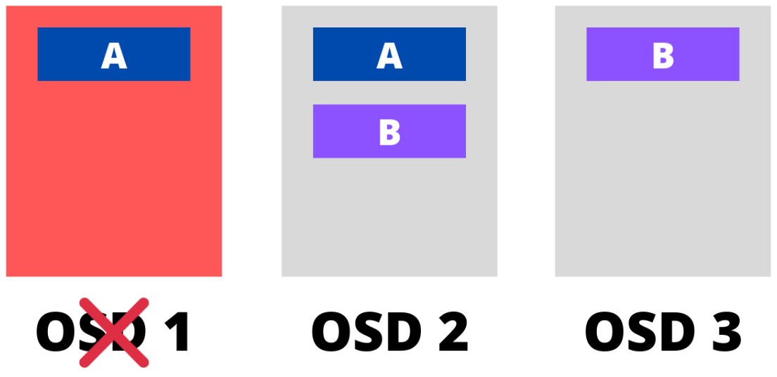 Nous avons ici 3 OSD, le premier contient A, le second contient A et B et le dernier contient B.